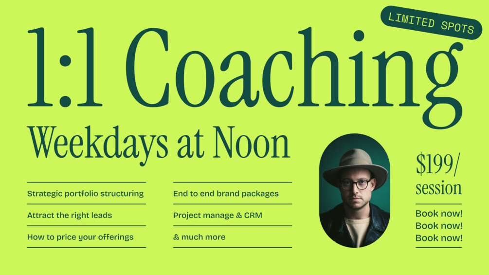 Exciting news: I am now offering personalized 1:1 coaching sessions tailored for designers and solopreneurs from diverse backgrounds! With 14 years of experience running a successful design business and generating millions in revenue through proven strategies, I've had the privilege of collaborating with industry giants like Square, Microsoft, Cloudflare, and Squarespace.